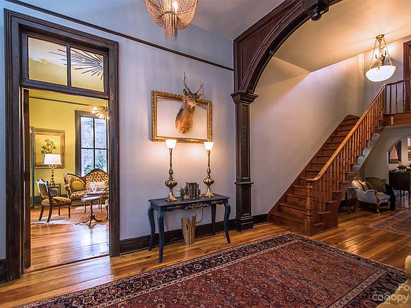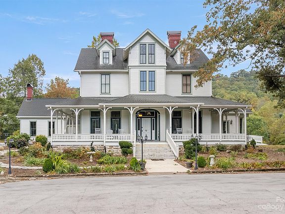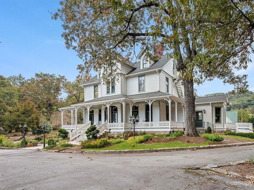 The Henderson Estate: an impeccably-restored Picturesque-style estate home set on 4.6 acres of private land in the Laurel Park area. It's a world onto itself, just minutes from Downtown Hendersonville. Built in 1865 by respected banker William J Davis, the estate is a one-of-a-kind property with a rich, local history. It also sits alongside the Ecusta Trail, a former railway line now being transformed into 19.4 mile recreational trail. Enter the stately entry hall, and marvel at 12-foot, vaulted ceilings. You'll immediately embrace the magnificent original staircase. The 5,613 sqft home has seven bedrooms, seven full bathrooms, with a modern kitchen and modern bathrooms. This may be the perfect place to call home, or consider enrolling it into a vacation rental program for income. On the property you will also find an antique carriage house and antique stone building, each with the potential for different uses. This property must be seen.
