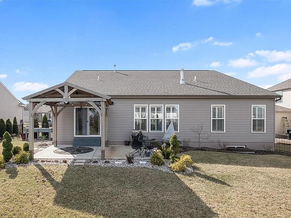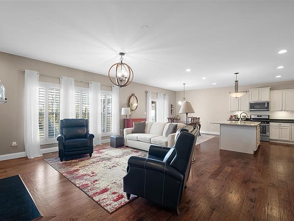 Brick & Stone Ranch-Large entry foyer with coat closet opens to Great Room with Gas Fireplace and custom plantation shutters. Dining Area with oversized sliding door leads to the 20'x10' patio with Pavilion & surround sound speakers. Designer Kitchen with 42 in upgraded Staggered cabinets, extra large center island with Quartz counters, Stainless steel appliances, walk in pantry & additional storage closet. Master bedroom suite with dual sinks, make up area, over sized shower, linen closet, & walk in closet. 5 in. hand-scraped wood flooring throughout main level living areas. Upgraded lighting throughout. 9' ceilings- 4.5 in baseboards & wide door trim package. Professional landscaping in front & back yard including a large concrete fountain. Rod Iron Fencing. New Carpet installed in all 3 bdrms-2019. Air ducts cleaned-2021, HVAC serviced-2021. Garage insulated, painted, & heated.