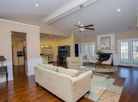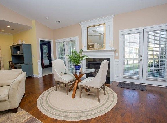 This impeccable open floor plan home with its handscraped four inch wood flooring to the custom paint colors accented with wainscoting and crown moulding is a must see in the Highlands at Withers Preserve located in The Market Common. From the moment you enter the foyer, you see the openness of this pristine home. The vaulted ceilings, the fireplace flanked by two beautiful French doors, the bright dining room with tray ceiling. Walk into the kitchen and you will see the granite countertops with glass tiled back splash that complements the stainless steel appliances including the natural gas range and beautiful white cabinets. Eat at the breakfast bar or in the breakfast nook. The spacious Master Bedroom with tray ceiling leads to a Master Bath with double sinks, garden tub, separate shower and walk-in closet. Access your Screened Porch from the Master Bedroom, Family Room, or Sunroom with its abundance of light from all the windows. Upgrades in this home include a four foot extension to Bedroom #2, under cabinet lighting, lights in closets and pantry, tankless gas water heater, utility sink in the garage, and additional security lighting. This 3 bedroom 2 bath home with 2 car garage is move in ready. Call today.