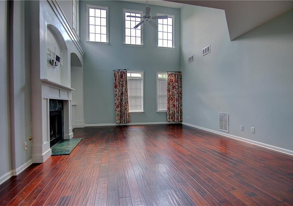 Home in a great neighborhood and great location. Close to everything. Hardwood floors throughout, stone accent entry, large owner suite with spa bath and large walk-in closet. Secondary bedrooms are split plan from owner suite for privacy. Large laundry room on upper level, bead board in secondary bath, vaulted ceiling secondary bedroom. Soaring ceilings with a double bank of windows in the family room with Juliet balcony, built-in shelves, fireplace, wood floors. Private but not fenced yard. Washer and dryer included. Pool and tennis included. 2 year lease required