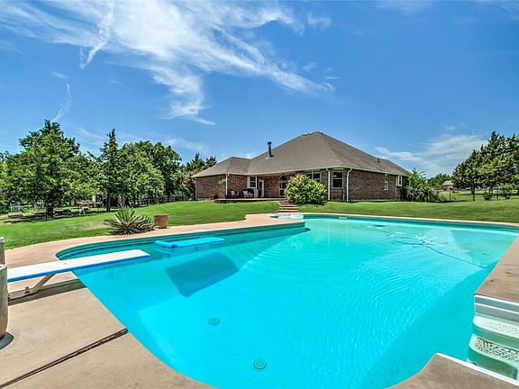In the chaos and noise of our modern world, this home is a little slice of heaven. Here, time seems to pass a little more slowly and the sounds of life are a little sweeter. From this large corner lot your day-to-day life will include things most folks will never have the privilege of experiencing in person. Equidistant between Edmond and Guthrie, you can experience all the best both cities have to offer. Inside, you'll find a kitchen perfect for cooking, baking and entertaining; spacious rooms and bedrooms; crown molding with cornices; and a garage door that is tall enough to accommodate your truck or SUV. Outside, the large back patio is the perfect spot to take in breathtaking sunrises while sipping your morning coffee, or to share an evening cookout with friends or family. From this vantage point you can watch a herd of horses or cattle grazing on the property across the street (all of the visual perks of ranch life with none of the work or responsibilities!). You might find yourself giving up that Netflix subscription because your new binge preference is watching the deer, turkeys, roadrunners, scissortail fly catchers, bluebirds, cardinals and dove that also call this neighborhood home. From the west facing front porch you can take in our unrivaled Oklahoma sunsets while listening to the songs of the quail and whippoorwill. The inviting, oversized pool offers opportunities galore for fun, relaxation or exercise—whichever you prefer! In the fenced garden area you will find a 12X15 garden shed outfitted with power and lighting and a beautiful old oak tree perfect for sitting under! Ask your agent to schedule a showing so you can see this outdoor paradise in person!