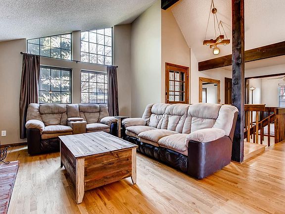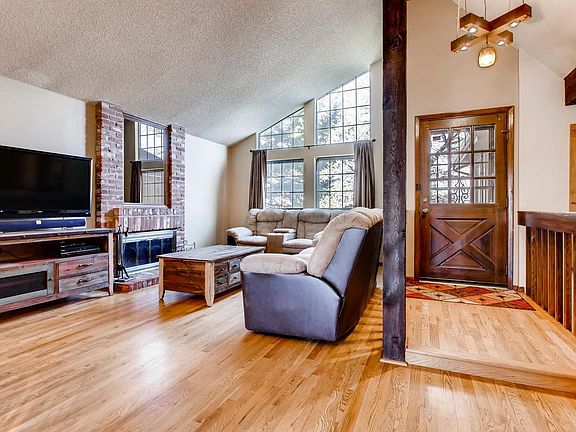 Breathtaking views on large corner lot with a cul-de-sac location are just the beginning of this home's appeal. As you enter the home you are welcomed by recently finished hardwood flooring. The solid wood beams and brick fireplace provide tremendous appeal. The kitchen has been thoughtfully updated with a full tile backsplash, stainless steel appliances along with plenty of cabinet storage. The views through the french doors are just waiting to be enjoyed on the backyard deck. The three bedrooms on the main level are spacious and downstairs there is an additional bedroom and bathroom. The finished basement also includes a kitchenette area perfect for guests and entertaining. As you walk out the basement doors to the perfectly sized backyard don't miss the swing on the patio or the garden area on the west side of the home. All of this within the highly desirable community of Ken Caryl Ranch where there is access to trails, recreation, and great socialization.
