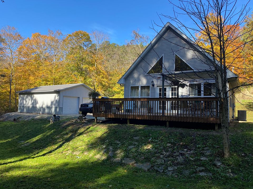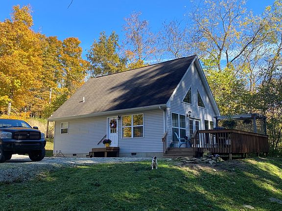 Beautiful Chalet home sitting on 1 Acre located in Franklin County. Property is very secluded and located 8 minutes from St. Leon . Home has 1 bed on the main floor with an open loft used as the master bedroom, Open kitchen concept . 2 Door pole barn Back deck overlooks a beautiful creek and mature hardwoods.