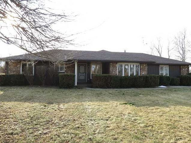 Split rail fencing lines the front of the property and the long paved drive leads you to this great home. Stone ranch with attached paneled garage. Formal LR and efficient kitchen. FR offers a wood burning insert and patio doors that lead to the sunroom or 3rd bedroom. Nice sized bedrooms. Huge attractive deck houses the above ground pool. Pole barn and shed are bonuses. Beautiful 2.4 acre lot. Must see, just add your decorator touches.