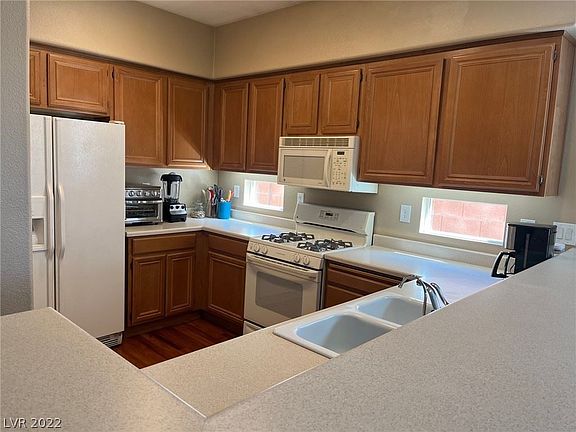 Darling single story in Ridgebrook. Delightful floor plan very light, bright and airy. Kitchen opens to Great Room area. Primary bedroom separate from other bedrooms. 2nd bedroom designed as a den, but used as a bedroom. Partial wood floors with tile & carpet. Plantation Shutters. Carpet replaced last year. Mature lush backyard with covered patio & trellis. Home is nearby Downtown Summerlin, Red Rock Resort, Bears Best Golf Course, Red Rock Canyon and all the Summerlin Amenities!