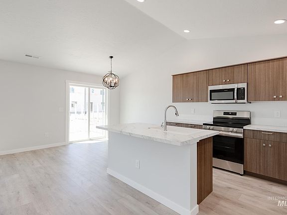Embrace the comforts of a brand new home in Caldwell, Idaho. The Harlow 1364 is the quaint split bedroom you've been waiting for! Enter inside and be welcomed with 8' ceilings and an entryway that leads you to the heart of the home. The open concept living area & kitchen are at the rear of the home, so the hustle & bustle of the world can melt away. The well-appointed kitchen is equipped with a kitchen island and a spacious pantry. Easy access to the patio from the dining area makes enjoying the outdoors a breeze. Escape to the primary suite at the end of the day, where the en suite bath offers dual vanities and a walk-in closet provides plenty of storage. Two additional bedrooms are located at the front of the home, offering a peaceful separation from the primary suite for added privacy. Photos are of the actual home!