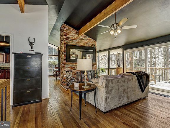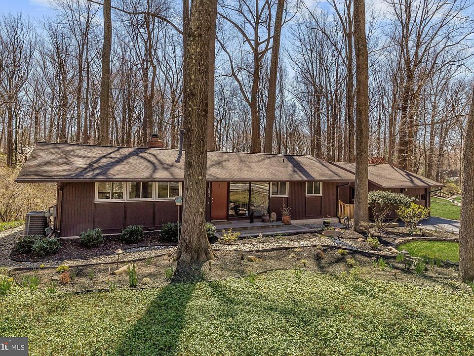 Exceptionally renovated rancher offering a mid-century flair sited on a gorgeous wooded cul-de-sac lot. Offering professionally landscaped grounds with lighting, newly resealed driveway, front patio extension, and rear lower patio with planters. Step inside to find a remarkable open floor plan, stylish modern lighting, gorgeous hardwood flooring, soaring vaulted ceiling, exposed wood beams, and a brick profile wood burning fireplace. Floor to ceiling windows provide a breathtaking panoramic scenic view. Stunning kitchen highlights granite counters, new faucet, sleek subway tile backsplash, stainless steel appliances, gas cooking, and custom cabinetry. Main level primary suite embellished with light filled windows and a new stunning en suite bath enhanced with a freestanding volcanic limestone soaking tub, dual vanities, and shiplap accents. Additional updated full bath concludes the main level. Impressive freshly painted lower level features four graciously sized bedrooms, an inviting family room with a wood burning fireplace, luxury flooring, shiplap, new plush carpeting with upgraded padding, laundry room, and walkout-level access. Outdoor sanctuary boasts the perfect deck, patio, and fenced yard overlooking a tranquil stream and tree lined view. Don't miss out on the opportunity to reside in one of Howard County's most coveted communities