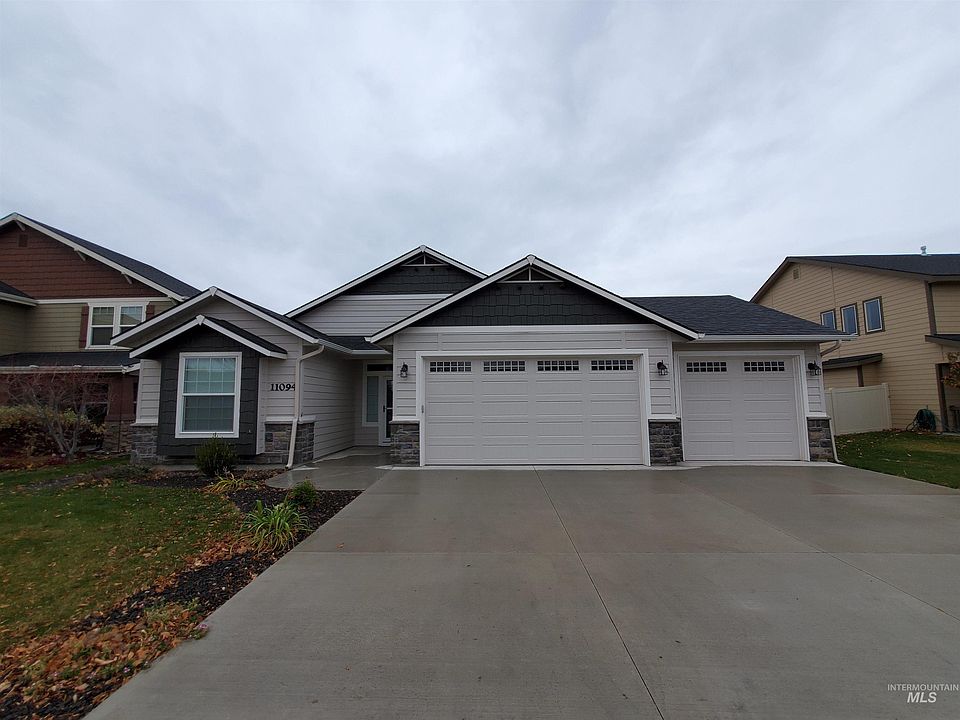 Beautiful, 1-level home on Nampa's west side! Like-new 3-bedroom home with 3-car garage! Quality, custom construction with Granite counters, upgraded appliances, gas range, and ceramic tile! Nice Mud-room separate from utility! Full window coverings, full-gutters, storm doors, exterior window shades, and vinyl privacy fenced yard. Double gate for potential RV PArking! 2-year old home is better than new! Community park with playground and lots of open space!