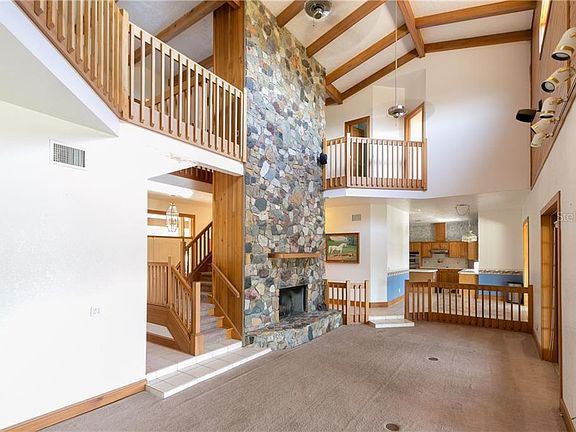 Great opportunity to own an equestrian estate with lake views of Little Lake Nellie and Big Lake Nellie. This 78+ acre working horse farm includes a 4,000+ sqft home, 22 stall barn, and is entirely fenced with a training ring, lighted arena, cross-board fence paddocks and pasture land. The ranch style 2 story home has plenty of space at 6 bedrooms and 4.5 bathrooms. The first floor master bedroom features 10' stone fireplace and is an owner's retreat. A formal living room, formal dining room, family room with massive 2 story floor to ceiling custom stone-faced wood burning fireplace and spacious kitchen with island and eat in space round out the lower level. The 680 sqft Florida Room overlooks the countryside & lakes. The additional 5 bedrooms are on the second floor. Private gate, large driveway and an oversized 3 car-garage. The separate 18,000 sqft stable features 22 concrete stalls, an employee lounge, private office, 2 wash rooms, 3 tack rooms, 2 matted indoor wash racks, fly control system over every stall, feed and hay storage, workshop, and gated equipment storage. Not to mention the 2,500 sqft, 3 bedroom, 2 bath care takers apartment with family room, full kitchen and attached classroom space. The property contains two wells for potable water and pasture irrigation. Located just minutes to Lake Louisa trail, 1 hour to Ocala and only 10 minutes to shopping and groceries. This is a rare find in a rural location but still with a close proximity to theme parks, area attractions and downtown Orlando.