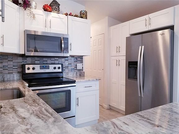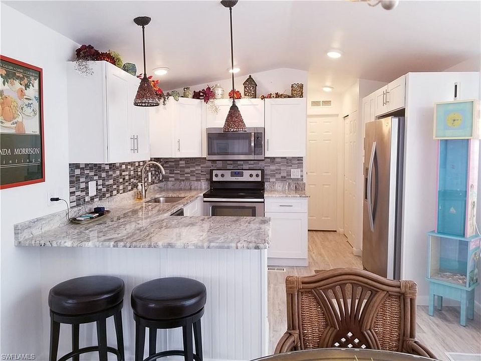 WOW THIS IS THE ONE!! YOU CAN'T FIND A NICER PLACE UNDER $120K SO CLOSE TO THE BEACHES! SUPER CLEAN AND BARELY LIVED IN...A PERFECT VACATION HOME WITH A QUICK DRIVE TO SANIBEL AND FORT MYERS BEACH! THIS GORGEOUS HOME HAS BEEN COMPLETELY REMODELED FROM THE KITCHEN WITH SOLID WOOD SHAKER CABINETS, BEAUTIFUL HIGH END GRANITE, AND GLASS BACK SPLASH. BRAND NEW WHIRLPOOL STAINLESS APPLIANCES. NEW BEAUTIFUL WATERPROOF PLANK FLOORING THROUGH OUT HOME. THIS HOME WAS CONVERTED BACK TO A 2 BEDROOM WITH ADDING A BRAND NEW HALF BATH WITH A NEW SINK AND TOILET. HOME HAS NEW DRYWALLED THROUGH OUT AS WELL AS ALL NEW LIGHTING, NEW PLUMBING, AND NEW HOT WATER HEATER. YOU ALSO HAVE A NICE LARGE SCREENED TREK DECK IN THE BACK WITH A NEW STORAGE SHED. NOT TO FORGET...YOU OWN YOUR OWN LAND IN PINE RIDGE PALMS! AND, LOW LOW FEES OF $363.00 A QUARTER INCLUDES CABLE, WATER, LAWN CARE AND ACTIVITIES.