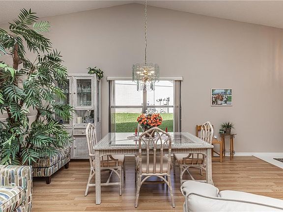 Upscale 55+ community, maintained villa, on golf course. You will appreciate the wood laminate flooring, vaulted ceilings, walking distance to the CLUB. Formal living/dining area, open & split floor-plan, kitchen w/breakfast nook, and great-room perfect for entertaining. Both baths w/solar tubes & linen closets. Master w/dual sinks & walk in closet. Laundry w/cabinets & sink. Enclosed heat/cool lanai, 2014-Roof, 2010-A/C w/whole house filter. Screened garage, and access keypad. gutters & downspouts. (public golf course of which 5 holes meander through community) 45 min. Tampa Int'l airport, 20 min to Gulf, easy access to Orlando, Pine Island, medical facilities, shopping, & entertainment. Many new restaurants and commercial businesses recently opened.