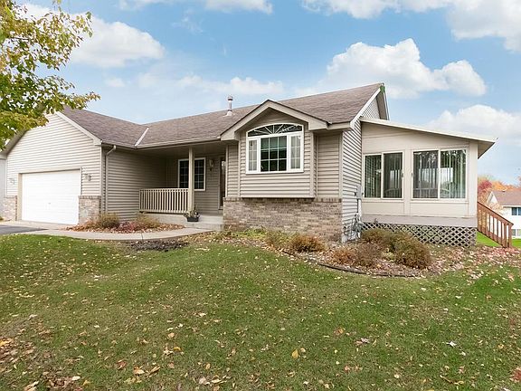 Here it is! The one you've been waiting for. This 4 BR rambler is finished top to bottom and features a great open floorplan! Main floor offers a vaulted ceiling and is accented w/gleaming hardwood floors, open rails to lower level, raised panel cabinetry in the kitchen w/breakfast bar and arched window over sink allowing extra light in. You will fall in love with the vaulted 3 season porch off the dining area separated by a bayed sliding glass door. There is a main floor laundry room w/built-in cabinets, BR & full bath plus private Owners suite with its own 3/4 bath. The walkout lower offers two additional BRs, 3/4 bath & large FR with corner gas stove. All this plus central air, security system, maint free exterior, oversized dbl gar and great cul-de-sac location with easy access to 169. Close to schools, shopping and more! HURRY!