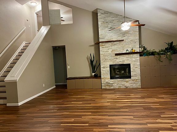 Well-kept spacious home in quiet, convenient cul-de-sac. 1 mile to grocery store, gas station, post office, pet store and park. Lots of mature trees, 400 sq ft deck, 1/3 acre lot, raised bed garden, lawn and flower garden. Less than a block to swimming pool. 3 bedrooms, 1 on each floor, 2 full bath and 2 half bath. High vaulted ceilings, open floor plan, fireplace, luxury vinyl flooring, bright with lots of large windows and automated window coverings. Open house by appointment only. Message for time.