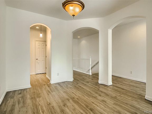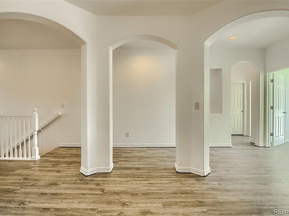Handsome ranch style home in rare River Oaks location backing up to open space with mountain views. Move in condition and Radon has been mitigated too! All new paint inside and out. New luxury plank flooring throughout main level. Kitchen with island, stainless appliances, double ovens, and 2 pantries; Kitchen & Butler's. Featuring refreshed cabinets, new quartz countertops with breakfast bar, stainless steel sink and faucet. Opens to spacious great room and eat-in area. Great plan for entertaining! Generous master suite with adjoining 5 pc master bath with walk-in tub and closet, new sinks & faucets. Plus large open basement for future expansion, covered rear porch, and a 3 car tandem garage that is great for longer vehicles. Close to neighborhood parks, schools and easy access to Hwy 85 & I-76 too.