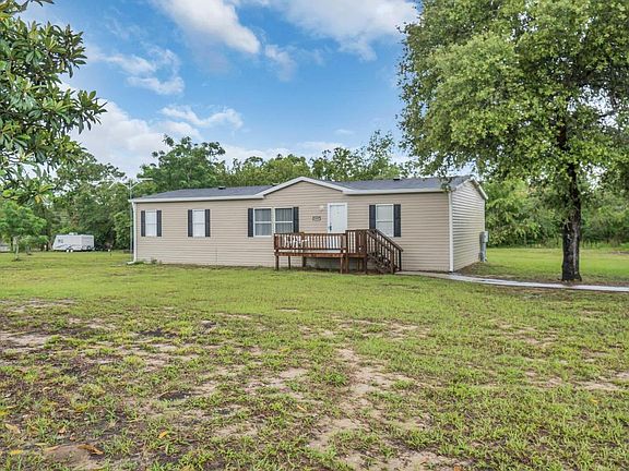 Away from the hustle & bustle, yet minutes away.Spacious 3-2-2 like new mobile home, custom seamless gutters, 2.7 acres of beautifully cleared land! Open floor plan, dining room, great room, laundry room. Kitchen with wood cabinets & center island. Master bedroom suite & bath with large walk in closet, garden tub/shower. Hand crafted pressure treated wood front deck & back patio with built in firepit. Added concrete walk & approach to detached 2+ car garage/workshop 31x24, finished interior with AC/electric, pegboard, shelving, benches, own circuit breaker box. Added storage shed 13x20, wood siding, shingled with double door entry & loft. Zoned AG. Bring your farm animals or a Bona Fide Business! Plenty of room for RV parking, boats, 4-wheelers, basketball, playground, the sky's the limit