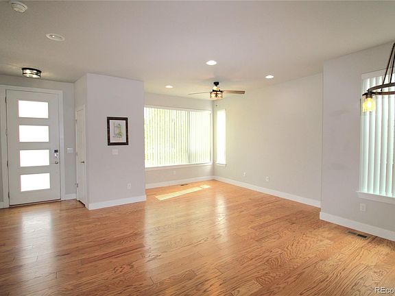 This beautiful contemporary Central Park single family residence is conveniently located near Anschutz Medical Campus, Stanley Marketplace, parks, pools, Bluff Lake and Eastbridge Town Center. Inside your future home you will find an open floor plan with a spacious living/family room adjacent to a dining area, private office and large kitchen. The entire first floor features neutral paint, light stain hardwood floors and tall ceilings. In the kitchen you will find a large island, stainless steel appliances, 42" espresso stained cabinets, double-door pantry closet and easy access to the backyard and detached 2 car garage. In the large backyard, you will find a chicken coop (sans the chickens), beautiful landscaping and wood plank fencing. For the convenience of your guests, the main floor powder room is right near the staircase leading upstairs. On the spacious landing, the two secondary bedrooms are adjacent to one another and right near the full size secondary bathroom. As you pass back through the hallway, you'll pass the laundry closet with a front load washer and dryer. This also leads to the primary bedroom where cathedral ceilings and windows add to the generously sized private oasis. The primary bathroom features dual sinks, a soaking tub, glass shower and privacy room for the commode (WC). If you need additional space -whether for storage or at home gym/playroom, the unfinished basement provides over 800 sq ft of space.