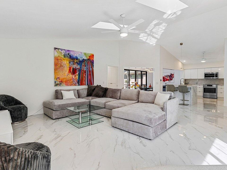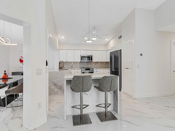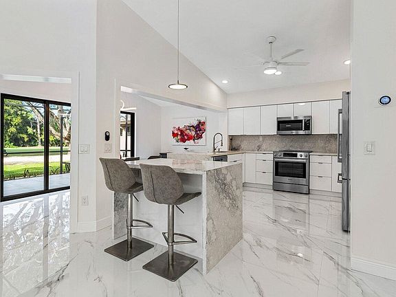 Fully renovated, 3-bed, 2.5 bath home offering a golf course fairway view. Renovated summer of 2022, this residence features a stylish kitchen with quartz countertops and top of the line stainless steel Bosch appliances. All baths have also been totally renovated with today's latest finishings. Open & split floor plan creates a seamless flow throughout the living spaces. Ample storage & custom closets contribute to the home's practicality & the dining area provides a picturesque view of the backyard which boasts mango & banyan trees. 2017 installed A/C, new tankless water heater, and new washer & dryer. BWCC offers resort style amenities including two 18 hole golf courses, tennis, pickleball, Fitness Center, spa, game room & fine dining! Mandatory membership required $95,000.