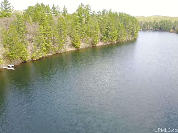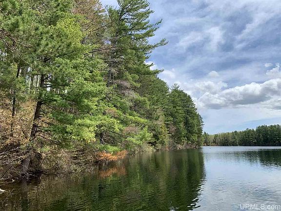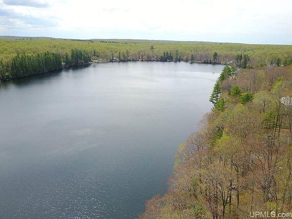 A truly amazing recreational property on Lake Eva, this 10 acre parcel has over 340' of water frontage and it's ready to go for your year round fun! The lake is spring fed, has a sandy bottom, and is perfect for swimming. There is no public access to the lake and the quiet, peaceful atmosphere makes it a great fishing spot too! The towering pines and vista over the lake make this a beautiful, unique retreat and it's only a short drive from Houghton. The hard work has been completed on this property. There is a cleared area to park a camper or build your home or cottage. Power is available. A septic evaluation was completed in 2017. There is also an outhouse and woodshed in place. The road is private but the closest neighbors are year round residents and keep it plowed for their use. This gives easy access to the property for hunting and snowshoe treks throughout snow season. The sellers are offering the camper, dock and swim raft as negotiable items as part of the purchase. This could give you a true turn-key retreat! This is a property that you have to see to believe, come check it out today!