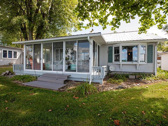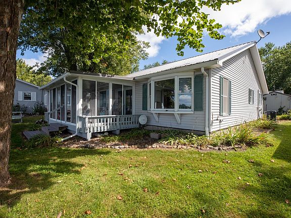 Enjoy breath taking sunsets from the three seasons porch of this beautiful home on Bruce Lake. With 65’ of lake frontage, this property includes a 2 bedroom, 2 bath house, a 2.5 car detached garage, and shed. A small, formal entry greets guests before they enter a huge living room with a fireplace. Guest bedroom is attached to a guest bath, and the bedroom suite includes a walk-in closet, large bathroom with laundry, and an additional smaller closet. The kitchen has eat-in functionality and a small dining area. Meticulously maintained, this home is ready for you to enjoy not only the holidays but next summer.