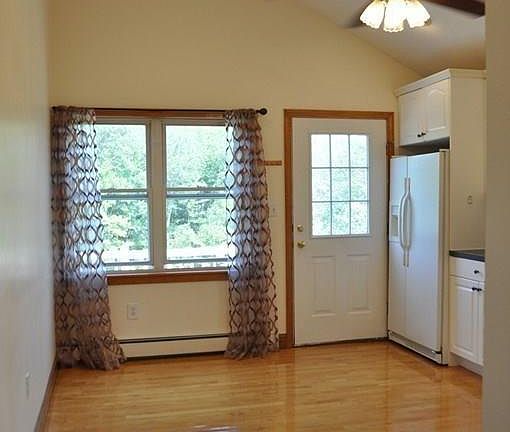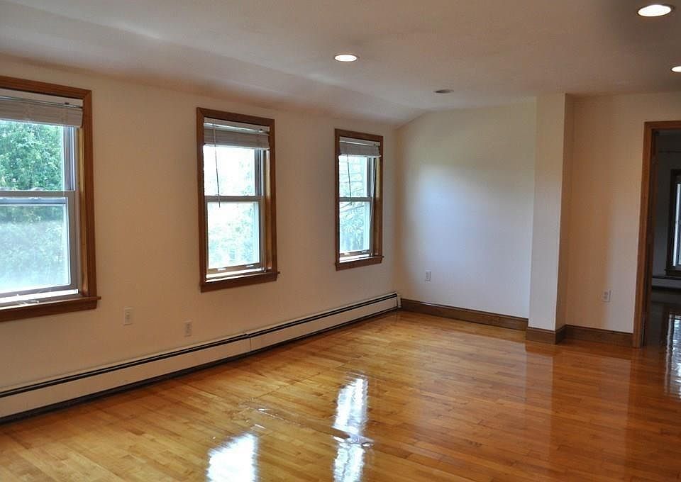 Bright and cheery spacious top floor apartment with hardwood floors & modern fully applianced kitchen including washer/dryer. 2 bedrooms plus bonus room for potential small office (not a bedroom). Brand NEW bathroom just installed with tiled shower stall (no bathtub). Off street parking for two cars in shared parking lot. The shared yard space over looks stream/pond that runs behind the property. Unit has a private deck for outside enjoyment overlooking the water & yard below. Conveniently located moments to the Ashland T Station, and downtown Ashland shops/restaurants and Library/Post Office/Town Hall/Police/Fire Dept. INCLUDED: Water/Sewer/Landscaping and snow removal .Tenants pay gas/electricity/cable and pay Annual Ashland Trash removal fee of $146 plus cost of orange pay-as-you throw bags. Approved applicants pay 1/2 month brokers fee to Realty Executives. Sorry, no pets or smokers. Other tenants in building are working professionals who maintain a peaceful living environment.