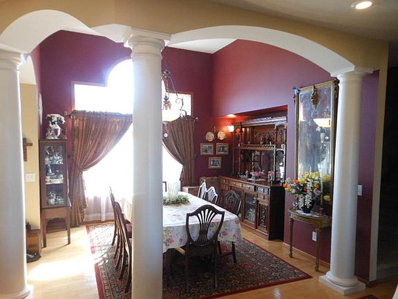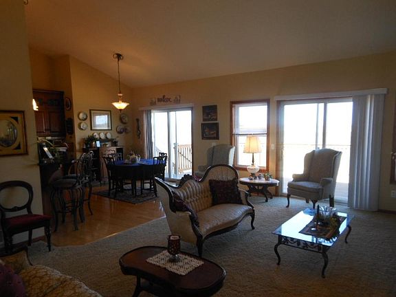 Daylight walkout, cathedral ceiling on main floor. 3 fireplaces (one double sided) between master bedroom and living room. Columns in dining room. Cherry kitchen cabinets and granite tops with 1/4 sawn oak cabinets and granite tops and trim down. In floor heat downstairs and in main floor master bathroom. Patio and deck overlook pond and valley. 3 car attached sheetrocked, insulated and heated garage with camper pad. Heated and air conditioned bonus room above garage.