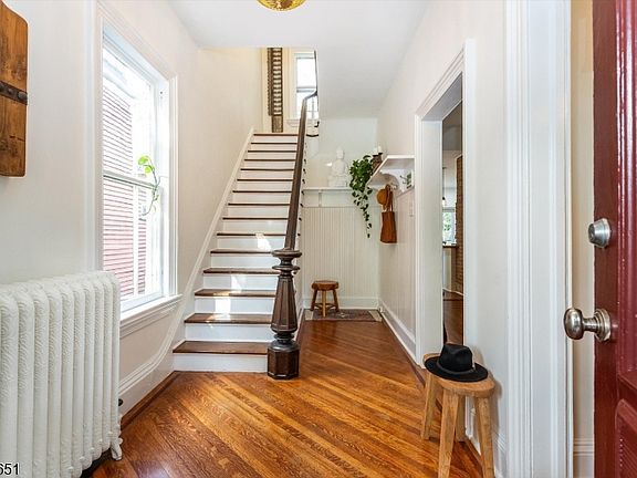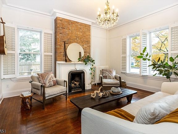 Step into timeless charm with this stunning 1878 South Orange Victorian, blending original architectural beauty with thoughtful modern upgrades. From the moment you enter the gracious foyer featuring soaring ceilings and a classic staircase, you'll feel the soul of a Brooklyn brownstone with the warmth and character of your forever home. Rich original wood floors, exposed brick, tall windows, archways, and exquisite custom woodworking bring elegance and history to every room.The 1st fl offers seamless flow: the inviting living room with high ceilings and exposed brick fireplace opens to the dining room through glass French doors, with a 2nd exposed brick fireplace! The airy kitchen oozes charm with exposed brick, new appliances and a cozy island, connected to a new mudroom, a period detail full bath, and a private, fully fenced backyard ideal for entertaining! Two fireplaces and high-end light fixtures add sophistication throughout. Upstairs, the 2nd floor features 3 serene bedrooms with new wide-plank wood floors and custom closets. A new luxurious full bathroom with double sink Italian marble and brass details is tucked behind an arched doorway. The third floor w walk in closet offers flexible space, perfect for office, guests, future primary suite or play. Enjoy updates like new water heater, new 2nd fl windows, custom shutters throughout, and central air! Just 2 blocks to downtown S Orange, NYC train, restaurants and shops - this location is unbeatable!