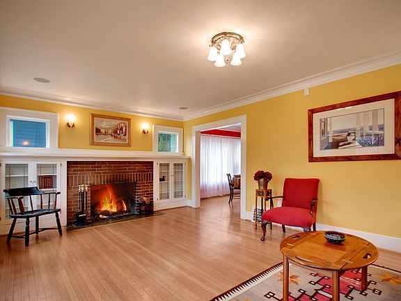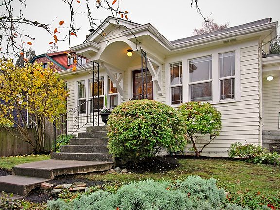Charming, delightful Craftsman! Sweet curb appeal, nice porch! Spacious, bright kitchen w/gas stove, two sinks, breakfast bar to lounge and enjoy coffee! Classic look with modern amenities; built in cabinets with lighting sleek white tile. Living room graced with lovely fireplace with built ins, hardwood floors, lots of windows. Formal dining room, two bedrooms and bath finish this floor. Lower level has bedroom, three quarter bath and huge room. Detached one car garage, perfect backyard.