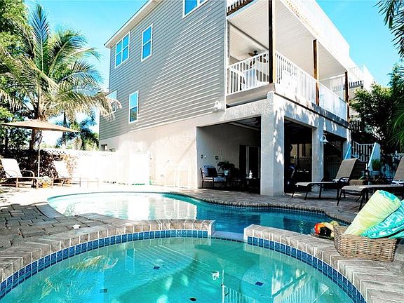 Impeccably appointed, 3 bedrooms, 2 baths, single family home is just steps to the Gulf. You will enjoy warm breezes and beautiful views of the Gulf of Mexico from the master bedroom and guest bedroom. It features a pool and spa in a quiet neighborhood. Home is being updated and modernized in fall 2019 with a new kitchen, new floor on third floor, new furniture, etc., game room on ground floor. Includes two large covered decks plus patio great for outdoor BBQ's by the pool. This house is located in Holmes Beach with countless activities to choose from. The free trolley just stops steps away from the property. This home is in a successful rental program. Make it your new primary residence or continue to hold as investment property. Sold fully furnished as/is with right to inspect.
