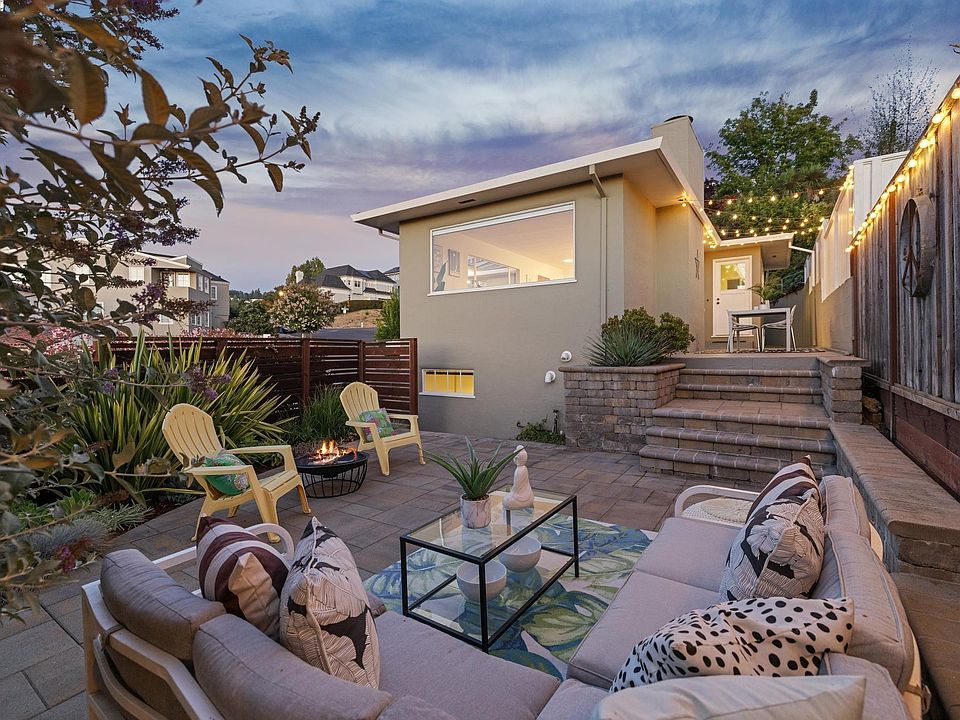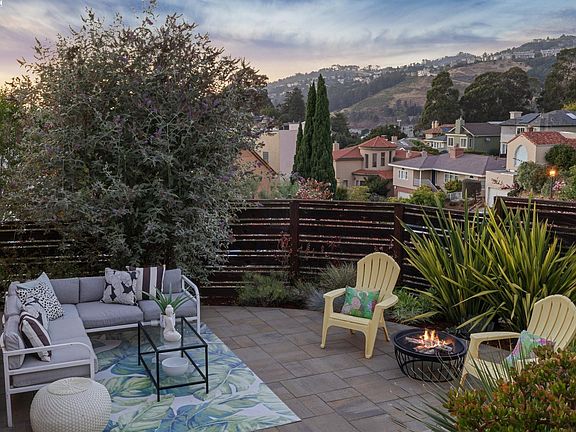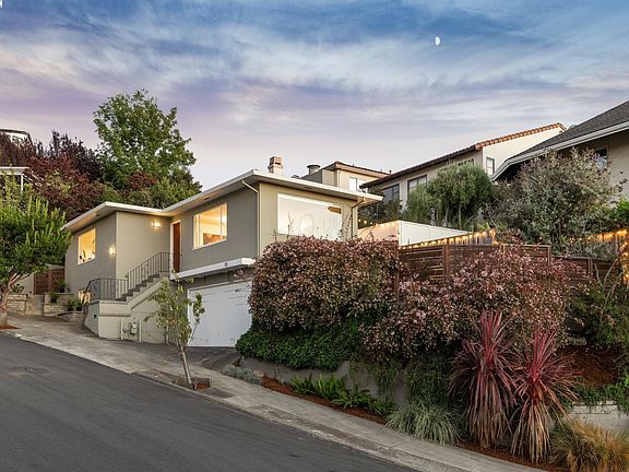 Perched in the Upper Rockridge hills, this upgraded Mid-Century 3BD/2BA home offers flexible living (2BD/1BA upstairs and full service studio apartment below), modern sophistication and easy California living. Step inside the 1598 SQFT home’s spacious living area to see dramatic views of San Francisco Bay and the East Bay hills from two huge picture windows. A fireplace keeps the room cozy while gorgeous hardwood floors span into the sunny dining area. Perfect flow leads into the bright kitchen with new counters, built-in shelving, and a door to the large slate patio for easy indoor/outdoor living. With beautiful hillside views, dine al fresco, relax with your morning coffee, or spread out and play. Back inside, a beautiful hallway with a stylish geometric wainscoting leads to a modern full bath and two bedrooms each with their own walk-in closets. Downstairs, find a flexible space with a stylish new bathroom, laundry area, and kitchenette. The area is ready as a primary suite, in-law, den, home office, guest room, and offers interior access to the 2-car garage. Down the road, find top-rated K-8 Hillcrest Elementary, Village Market, enjoy Temescal Park’s trails and swimming, or lively Rockridge for shopping and dining. Live large in this gem of a home!