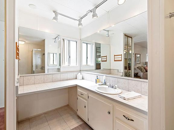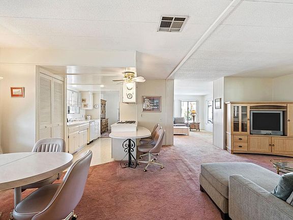 Financing Available! Offering $5,000 flooring credit. The roof has recently been reconditioned and sealed with waterproof coating. Welcome to El Dorado Palms Estates, Palm Springs' premier gated 55+ community! This charming mobile home, set on fee simple land (which you own!), is ready for your personal touch to make it the perfect desert retreat or full-time residence. Features 2 bedrooms, 2 full baths, and 1,280 sq. ft. of bright, inviting living space. Spacious living room with large windows that bathe the interior in natural light. There's a bar for entertaining and plenty of storage throughout. The primary bedroom includes an en-suite bathroom and generous closet space, while the large carport comes with outdoor storage units for extra convenience. With endless possibilities for renovation and customization, this property is brimming with potential. Plus, low HOA fees give you access to fantastic amenities like tennis courts, two pools, a spa, sauna, and a large clubhouse with a banquet hall and full kitchen for hosting private parties. You'll also find billiards, card and reading rooms, a recently updated fitness center, and a calendar full of exciting community events. Located just minutes from shopping, dining, entertainment, and a short 10-minute drive to downtown Palm Springs, this is a prime opportunity to own a piece of paradise in the desert! Low fee RV parking available with the association!