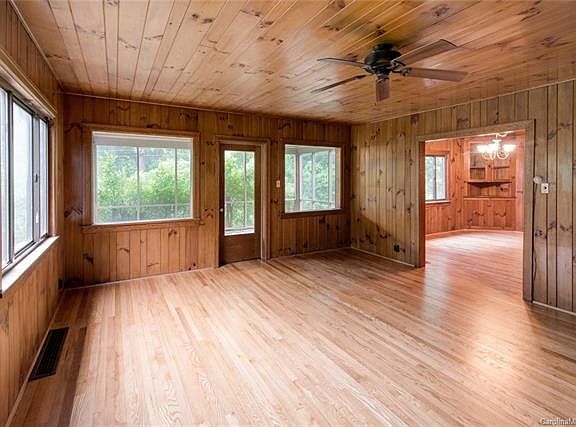 Unique Montreat cottage/home with beautiful original all pine interior walls and ceilings. Newly refinished oak floors. All one level living with 3 bedrooms and 2 full baths on main floor. Shared bath has just been remodeled. A large loft/bedroom upstairs with full bath for overflow and/or guests. Fireplace in living room and bedroom. Large cedar lined closets in every downstairs bedroom. Updated kitchen with granite countertops and eating area. Excellent screened porch with classic Montreat marble floor over one car garage. Central air and heat serve main floor, only. Baseboard heat upstairs. One bathroom has brand new renovation. Large enclosed garden space in backyard. Relatively flat with nice side yard, also. Easy access closer to the entrance of Montreat. Sidewalk, wooded path, and creek are all nearby.
