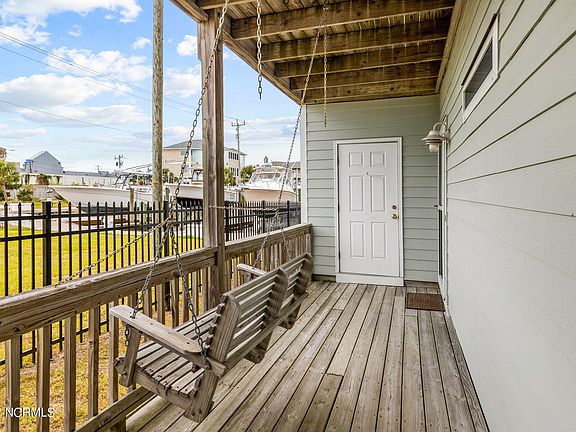 First floor living on the water for the young and young at heart with a deeded boat slip. This is a fisherman's and a family's dream location and condo. Recent ceramic tile flooring throughout the unit. Plantation shutters on all windows. Bonus room has two beds in it. Crown molding throughout except for bedrooms. SS refrigerator. Boat slip with a Tide Tamer boat lift several feet outside the back door. Kitchen pantry and a storage closet located outside. Swing on the side porch. Storm doors to protect and further insulate. Five minute walk to the ocean and very close to the Circle of Atlantic Beach and the local amenities. The open floor plan is perfect for entertaining and enjoying conversation with family and company. Furniture may be negotiated, if desired. This is a premier location with deep water, protected bay and covenience for everything boating and cruising. You won't want to miss this opportunity!