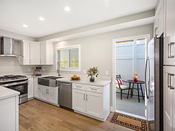 Enjoy living in this spectacularly remodeled home, the most private unit of a building re-imagined from the ground up. Come and see at open houses on Sunday, 2-3:30 and Monday, 1-2pm and 4:30-6pm. New and fresh with modern, luxurious styling, no detail has been spared in this unit aptly named "The Retreat." Designed to take full advantage of its location at the back of the property, The Retreat offers a secluded space surrounded by a private, gated, wraparound patio and pebbled dog run or storage area. The patio is separated from adjacent properties by an 8 foot vinyl fence and offers room for sheltered seating and a barbecue, just outside the kitchen's French door. Newly planted hedges outside the kitchen and living room windows will grow to add to the sense of sanctuary and peace. The modern kitchen includes premium stainless steel GE appliances that meet the requirements of the most demanding cook; a side-by-side 21 cubic foot refrigerator with water and ice; a 5 burner gas range with griddle option and a large, steam-cleaning, 5.3 cu ft capacity oven; and an ultra quiet 48 dB stainless steel-lined dishwasher. High performance quartz counter tops, stainless apron sink, large pantry, solid wood Shaker cabinets with quiet close hinges and drawers, numerous conveniently located outlets and increased power capacity to ensure that this kitchen functions as well as it looks. The bathroom features quartz counters and a tub/ shower with frameless glass shower doors. Both bedrooms have mirrored Shaker closet doors and tiered closet rods. A full-sized coat closet provides storage for larger items. Hallway linen cabinets also provide additional storage, with quartz countertops and an outlet for a convenient, out-of-the-way charging station for electronic devices. Pre-wired for both data and cable, the unit is move-in ready. The new wiring and expanded capacity extends to the garage: each unit's fully finished single car garage features an EV-ready hook-up for electric vehicles, automatic door opener, and security lighting. A full-sized parking space in front of each garage adds off-street parking for a second car. The building is located in a quiet, well-kept neighborhood close to restaurants on El Camino Real and the new North Beach entertainment district. Close to North Beach, the Beach Trail, Metrolink commuter rail, San Clemente Outlets, fine dining and historic downtown in the desirable West side of El Camino Real. 12 month minimum lease. Pets considered. Owner pays water, trash and sewer. Tenant pays all other utilities, including gas and electric. Smoking is not allowed on the premises. 1 car garage with 240V outlet ready for your EV hookup for electric vehicles, and long driveway will accommodate a second vehicle.