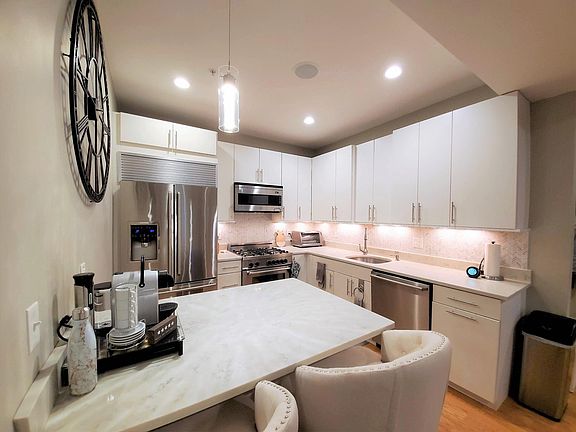 Spacious 2 bed 2 bath condo in South Boston just off of West Broadway, in the perfect location - a 5 min walk from Broadway T; short walking distance to Southie amenities as well as South End, Seaport and Downtown; around the corner from several gyms, Foodie's grocery store, liquor store, and children's / dog's playground. This unit features a beautiful open floor plan with hardwood floors throughout, central air, small balcony, washer & dryer, and built-in Sonos system in all rooms. The modern kitchen is a dream come true with luxury stainless steel appliances, an island, quartz countertops, and a wine cooler. The generous sized master bed includes a master bath with 3 shower-head luxury shower and a walk-in closet with built-out custom shelving. The second full bath includes a deep soak tub and is conveniently located right next to the second bedroom. Unit includes climate controlled garage parking spot and a small storage. Dog friendly. Available 9/1 or 10/1.
