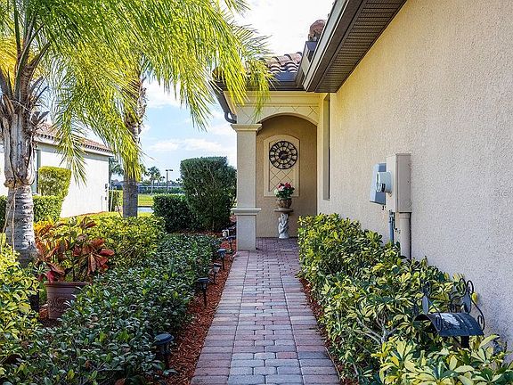 Why live in the cold when you can live in sunny, beautiful Paradise with all the amenities you could ever want right in your "backyard"?! River Strand Villa, WATER VIEW - Barely used 2 bedroom, 2 bath + Den/Office/Flex space, 2 car garage with extended screened paver lanai on a premium LAKEFRONT lot! Guard-Gated, Golf & Social community with 2015 Maintenance-Free Villa featuring Fresh modern interior paint, custom 18" ceramic tile throughout the main areas of the home, custom crown and trim moldings, NEWER/barely used plush carpeting in all bedrooms, NEW fixtures including ceiling fans. You will notice the open floor-plan with split bedrooms for privacy and the glass French-doors leading into your den/flex space. Kitchen features 42" cabinets, stainless steel appliances with brand new dishwasher, Granite counter tops featuring breakfast bar, and closet pantry. Double door entry in the master bedroom, offering his and hers closets, NEWER plush carpet, and master bath ensuite with dual sink vanity, large soaking garden tub and walk in shower. Split guest bedroom along with the second hall bathroom featuring a shower/tub combo and large vanity. Plenty of linen and hall closet space. Sliding doors out to the extended screened paver lanai has plenty of space to entertain and enjoy the tranquil water view with no rear neighbors! River Strand is an exclusive golfing and social communities with a 27-hole Arthur Hills designed Golf course, clubhouse with restaurant and bar, endless classes and social clubs, community pools/spas, resistance pool for exercise, fitness centers, tennis courts, pickle ball and much more! Centrally located right off I-75 next to Costco with fast access to Siesta Key Beaches, Anna Maria Island, Sarasota shopping, St. Petersburg, Tampa and more!