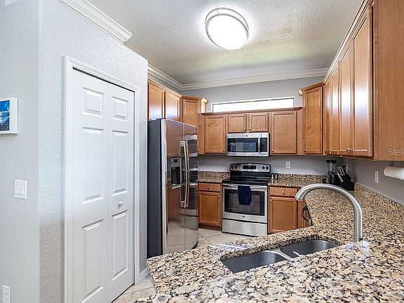 - Interior Features: Ceiling Fans(s), Eating Space In Kitchen, High Ceiling(s), Open Floorplan, Split Bedroom, Stone Counters, Walk-In Closet(s), Crown Molding, Solid Wood Cabinets, Thermostat, Kitchen/Family Room Combo, Living Room/Dining Room Combo, In Wall Pest System
