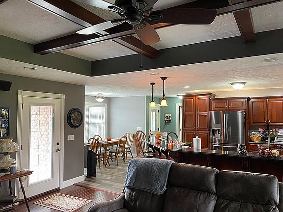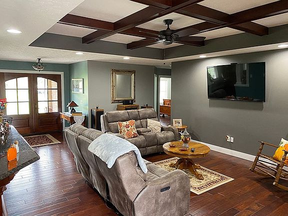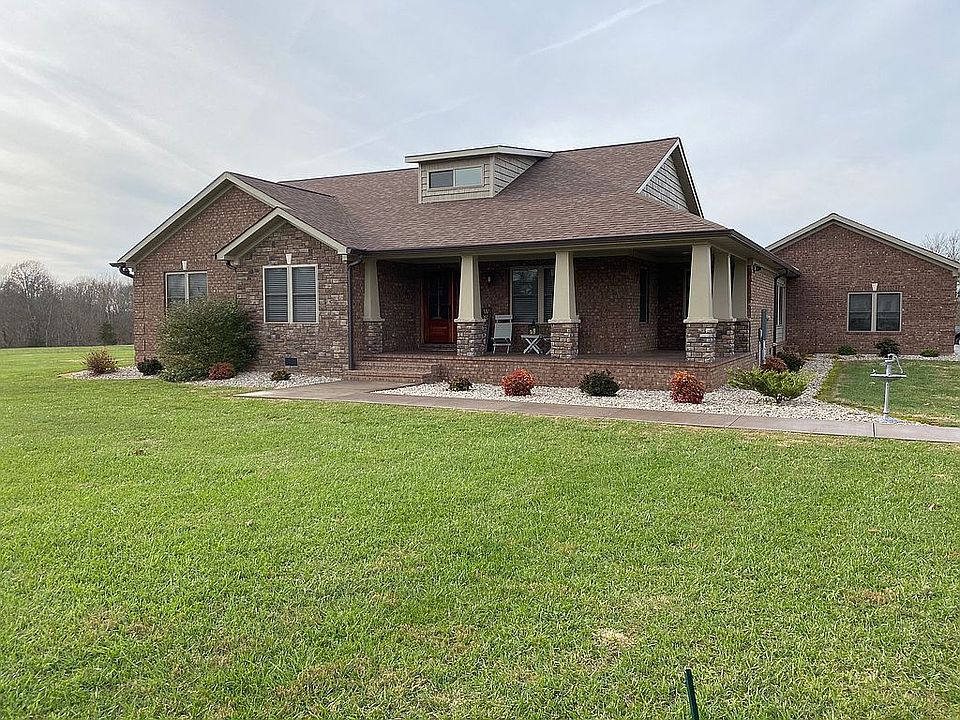 Custom built brick home with stone accent offering a great room with 9 and 10 foot ceilings, gas fireplace with stone, foyer with double mahogany wood doors, formal dining room, kitchen with custom built cherry cabinets, oversized bar with wrap around granite countertops, breakfast nook, three large bedrooms, 2 full baths and a half bath, large laundry area with custom built Cherry cabinets, master bath has his and hers vanity, custom built and oversized walk in tile and glass shower, large walk in closet with custom hanger and shoe racks, 3 car attached garage, detached storage building for your lawn mower and other toys, Etc, the inside walls of the foundation are insulated with spray poly foam which increase the R-value drastically, heat and air is dual fuel, installing the extra insulation in the interior walls and dual-fuel heat creates a huge Energy savings. The home is very efficient. Large paved driveway and concrete with Colored concrete sidewalks, front and side covered porches on the back and garage to the pool area with colored poured concrete around the pool, inground fiberglass pool 15 x 35 3 foot to 7 foot deep, the patio leads to the pool area. This home and property has plenty of privacy on 1.5 acre lot. Attic is floored in garage for storage space. For more information or to set up an appointment to look at the property please give us a call at 270-670-2294 or 270-678-5542.