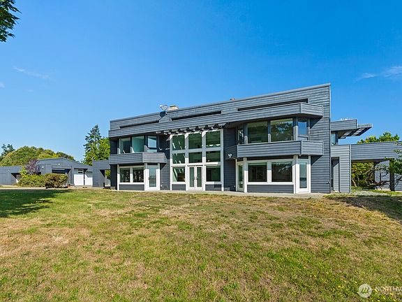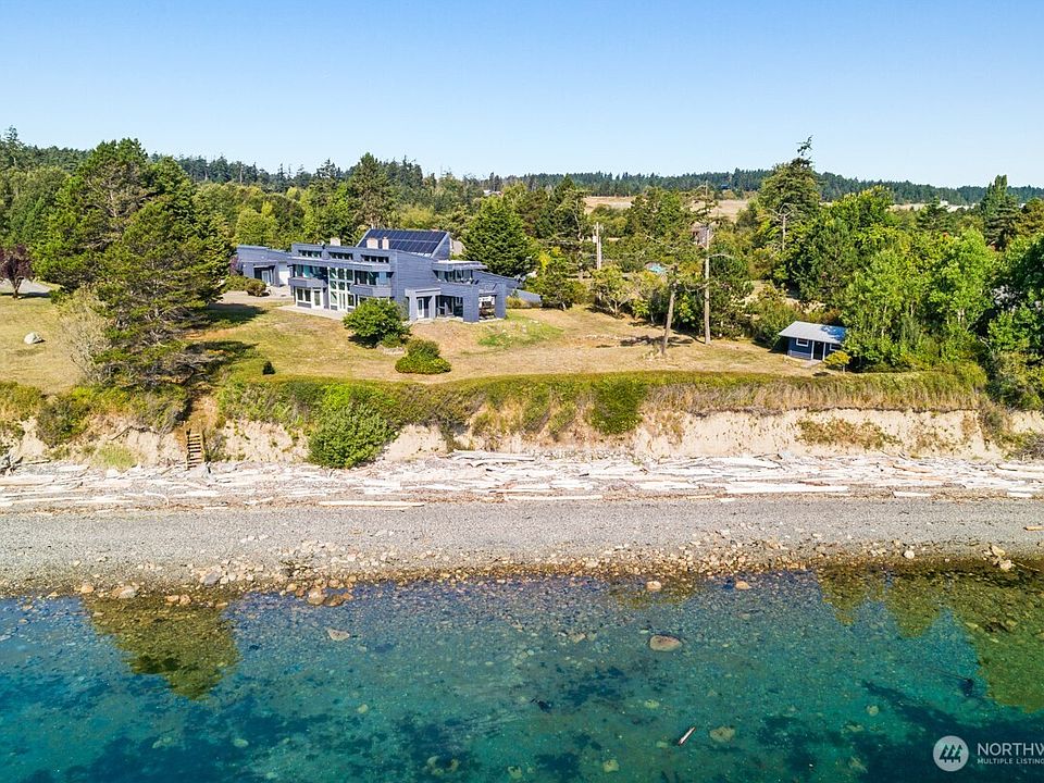 Discover waterfront living with this stunning property and beautiful Griffin Bay views. This spacious home on 3.3 acres, features 3 bedrooms, 3 baths and separate attached apartment with additional bedroom and bathroom perfect for guests. The home includes an office and bonus room, ensuring plenty of space for work and leisure. Attached 2 car garage, porte cochere and detached garage sized for boat and shop, storage space, bathroom, and small home gym w/workout Lululemon Mirror. Stairs lead to a gravel beach & mooring buoy. With a new septic system & private well, fruit trees, swim spa, generator and solar panels, this is a dream property. Two separate parcels, this property is an ideal blend of privacy and accessibility close to town.