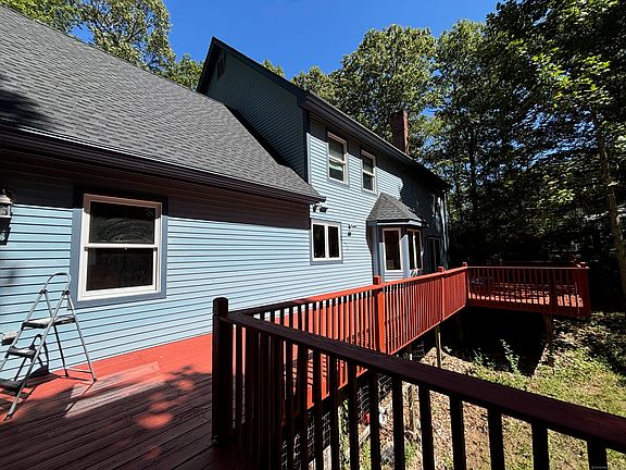 Room to live, work and entertain. 4 Bedrooms, 3 full baths and one half bath. (NOTE: town card says 3 BR; Bonus Room is 4th BR, and is listed as "other"). Spacious and thoughtfully designed, this home offers 1,995 sq. ft. on the first floor and 1,756 sq. ft. on the second, providing room for comfortable everyday living and entertaining. The first floor features a large kitchen with center island and generous breakfast area, flanked by a formal dining room, living room, and family room-perfect for gatherings of any size. A convenient half bath, full bath, and a versatile and spacious office/den complete the main level. The grand 2-story foyer with open rail balcony sets the tone for the upstairs, where you'll find the primary suite with whirlpool tub, shower, dual sinks, private toilet with bidet, and walk-in closet. The laundry is ideally placed in the second-floor hall. A bonus room serves as the 4th bedroom and at the end of the hall there is access to a rear staircase leading back to the family room. Additional highlights include a walk-up attic, abundant closets, solid pine six-panel doors, and dual oil tanks. Plenty of more space in the unfinished walkout basement for any number of things. Enjoy outdoor living on the expansive deck spanning the width of the home-ideal for entertaining or simply relaxing. This home is ready to welcome you-come make it your own. MORE PICS TO COME