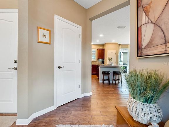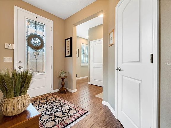 SIMPLY PARADISE! ONE look at this 2 Bedroom 2 Bathroom house + a DEN/office located on a GREENBELT with a CONSERVATION view and you will be ready to call it HOME! The CASCADES OF GROVELAND ( part of TRILOGY ORLANDO) offers a 55+ lifestyle like no other. Be ready to enjoy the massive 57,000 sq ft clubhouse with a restaurant/bar, event center, fitness center with state-of-the-art equipment, the sparkling pool/hot tub, dog park, fishing, tennis, yoga studio, classes, musical events, and SO MUCH MORE! This home boasts a split floorplan, wood plank porcelain tile throughout, plantation shutters, updated light fixtures, custom drapery, and a triple slider leading to the outdoor living space with the SERENE view. This home is also *energy efficient* and boasts a fully-paid SOLAR panel for low energy bills! The kitchen is a CHEF'S delight featuring GRANITE countertops, custom wood cabinetry, a timeless subway tile backsplash, STAINLESS STEEL appliances, closet pantry, and a large center island...just perfect for bar stools & conversation! The home also features LUSH landscaping, a side patio with pavers, and screened-in lanai...wonderful for watching the sunrise with your cup of coffee or hosting a gathering and entertaining! RESORT STYLE living awaits you, call for more information and your exclusive showing today! *Floorplan available