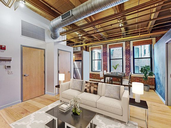 Nestled away on the top floor of an elevator building & away from the street,this delightful urban sanctuary is an unusual find! Soaring ceilings, industrial brick and beam classic loft with gas cooking reserved for top floor only, central a/c, hardwood floors, upgraded on demand hot water (no tanks!), en-suite washer /dryer,2 closets&large storage cage,ample natural light allowance. "L" shaped living space lends to numerous furnishing placement, plenty of options for successful home office too! 5G's vast ceiling height creates a true hidden oasis in the middle city. Professionally managed building w/ fitness room,video intercom&accessible trash/recycling room. Super easy access to Red, Green, Orange and Silver lines, South Station, Tufts Med/Dental, 93 and Mass Pike . Enjoy being moments away from Back, Bay, South End, The Waterfront, Seaport District, South Boston and Downtown/Financial District. Available for June move-in and one month broker fee from incoming tenant. Regrettably, pets are not permitted. Tenant pays electricity, cable/internet