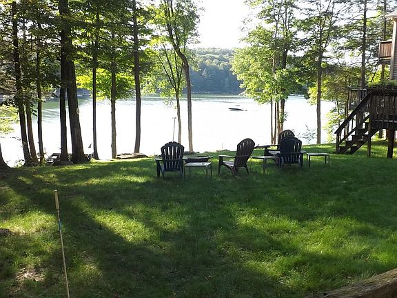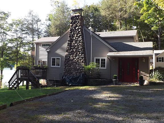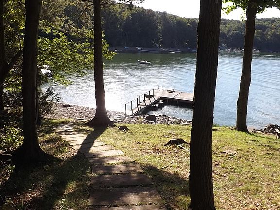 Lakefront Living at it's best with this beautiful home that has remodeled kitchen & bathrooms, wrap around deck for entertaining and wonderful views of lake. Home has approximately 135 feet of frontage. Gentle walk to waters edge to your very own dock. Low community dues! Won't last long at this price. Come tour this magnificent home today. You'll be sold!