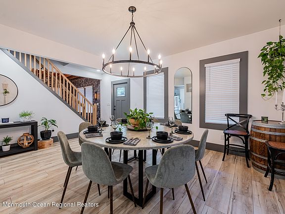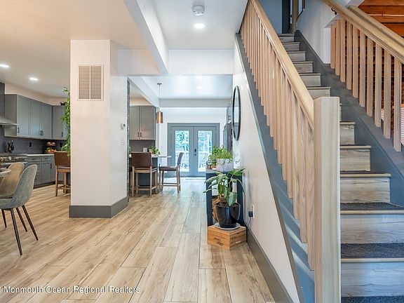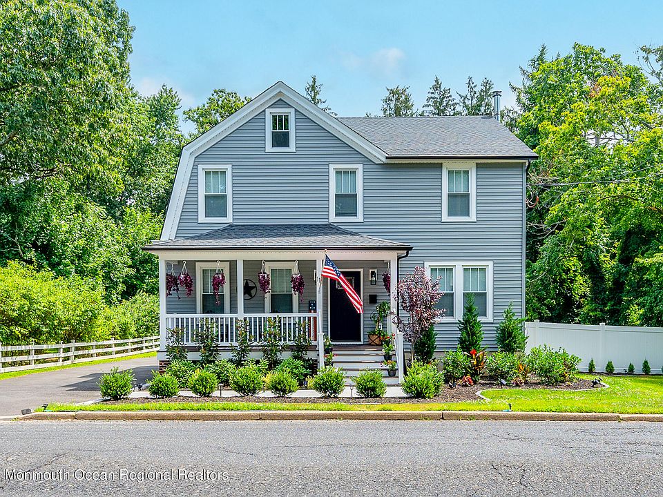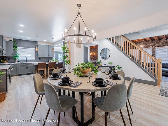 Get ready to be completely blown away by this stunning 4 bedroom 2 bath masterpiece in Holmdel. COMPLETELY RENOVATED DOWN TO THE STUDS IN 2021! The seller has spared no expense rebuilding from the ground up with every detail carefully handpicked and customized. This home boasts smart home features, full basement with outside access, ring doorbell and a 2-car detached garage. New roof, siding, porch and HVAC are just a few of the big ticket items that were replaced. Incredible curb appeal: fully landscaped with an inviting front porch and generously-sized rear deck - ideal for entertaining. Upon entering you'll be greeted by an open floor plan, wide plank luxury flooring and custom moldings. The custom light fixtures and finishes throughout this home will leave you speechless. State-of-the-art custom designed kitchen with all the bells and whistles! Quartz countertops, Brizo pot filler, touch activated faucet and gourmet Bertazzoni appliances. Wait until you see this CUSTOM WET BAR! An entertainer's dream! Living room features a wood burning stove and Quartz bar equipped with a refrigerator, built-in ice tray, dishwasher, sink and glass cleaner. Your guests will never want to leave! Make your way through glass French doors and onto the back deck to find a beautiful private lot with fully matured red pine trees. Just off the deck is a fenced area with lots of potential. Serene greenery with endless possibilities! This home backs up to a wide area of open land, offering an abundance of privacy. Finishing off the first floor is a mud/laundry room and a full bathroom. The second floor boasts a primary bedroom with 3 additional generously-sized bedrooms. At the end of the hall sits a full bathroom with a walk-in double steam shower and a freestanding tub, double vanity with LED mirror lighting, and storage - a true spa-like experience. Just minutes from Routes 35 and 36, Garden State Parkway, Holmdel Park, Bayshore Hospital, Bell Works, the best of NJ's beaches and public transportation- all conveniences that make Holmdel one of the most desirable places to live in Monmouth County. Don't miss the opportunity to call this HOME!