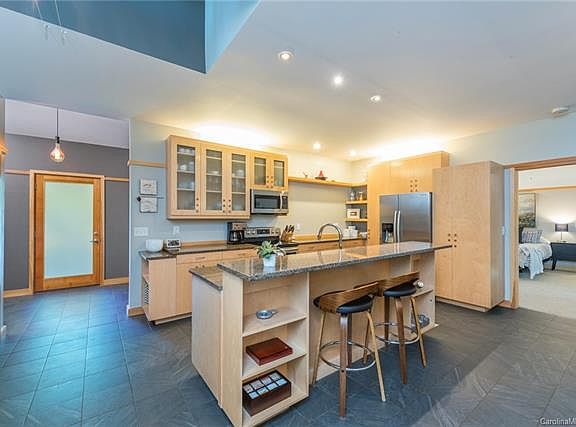 Come see this extremely well built and immaculately maintained contemporary! Custom built in 2015, this home is highly energy-efficient and offers a modern open floor plan. Professional landscaping and stone work just completed! Some great features include a master suite on main, vaulted ceilings, custom handcrafted maple cabinetry and doors, and designer details throughout. Huge kitchen has island w/ breakfast bar, stainless appliances, and abundant cabinet space. Private deck has wooded views. Large two-car garage. Convenient location yet quiet and private.