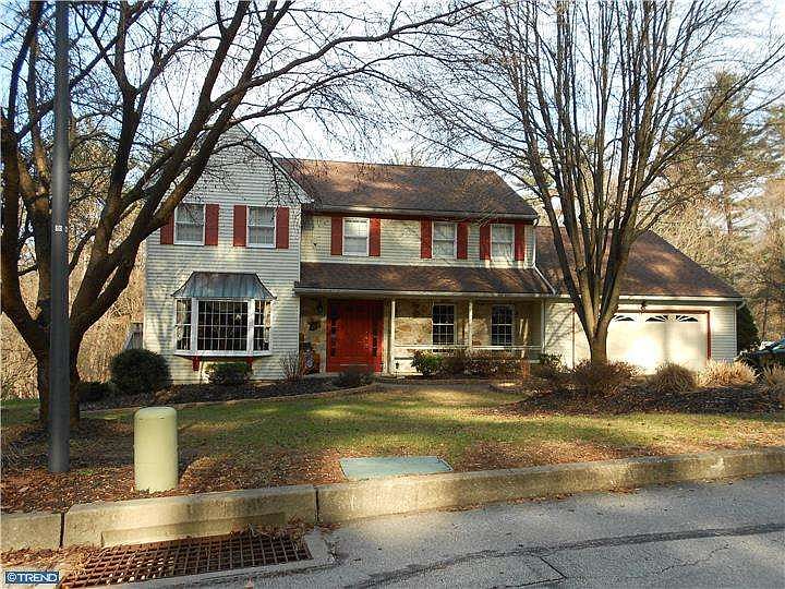 Absolutely pristine, stunning, Colonial in highly sought out Paxon Chase Development home on cul-de-sac! One of the largest house in the neighborhood. Front porch, elegant tile floor and wainscoting in the center hall w/closet and powder rm, formal Living Rm w/bow window and crown molding. Richly appointed Dining Rm w/custom window treatment, chair rail and crown molding. Large EIK w/granite counter tops, island, tumble marble backsplash, recessed lighting and hardwood floor...sit and have morning coffee looking out large kitchen window to a tranquil view! Walk-in laundry rm & mud room exits into 2 car attached garage. Do work from home in your home office off the kitchen which has an exit to of the house. Cozy Family Room with diagonal layed hardwood floors, raised hearth stone fireplace gas insert, flanked with windows on both sides. Exit thru french door to large expanded deck with electronic retractable sunsetter awning, overlooking the rear yard that backs up to the woods. 2nd fl: Opens into huge Master bedroom suite w/walk-in closet & dressing area w/ remodeled master bath. Large updated hall bath with new vanity & 3 large bedrooms with nice size closets. Basement: Full finished daylight basement 2nd cozy Family Rm w/stone fplc, entertaining area with granite topped dry bar also a playroom/exercise rm + wine/root cellar, double doors exit to a rear covered patio. Very well maintained home features a newer roof, EP Henry paver walkway & security system, newer roof and Hot water heater. Professionally landscaped on one of the best lot in the neighborhood with views of woods and babbling brook. Close to transportation to train station and airport and minutes away to downtown Media, shopping and restaurant. Just move in your furniture! Lots of street parking.
