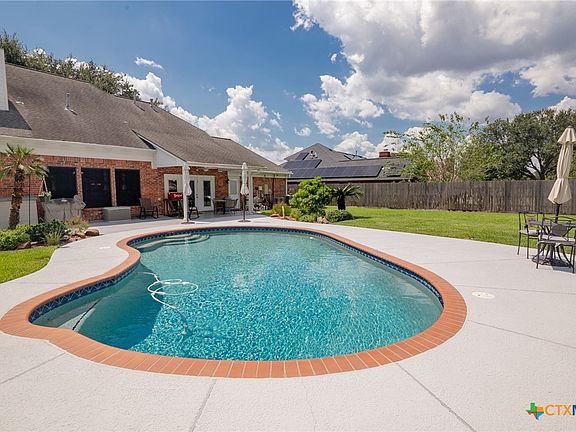 Experience the beauty of this two-story home with 4-bedroom, 2.5-baths, thoughtfully designed for exceptional living within its 3064 square feet, located in the desirable Burning Tree community. Recent updates enhance its modern appeal while preserving its architectural character. The open floor plan provides a warm & inviting entryway that flows seamlessly into the dining & family room. The family room displays 2 lovely built-in bookcases & a gorgeous gas fireplace. The kitchen has plenty of space to keep several cooks happy & the beautiful granite counters & large island is perfect for all your baking needs. The cozy breakfast nook is perfect for quick meals & kitchen desk is perfect for your treasured grandma's cookbooks. The French door off the entryway leads to a wonderful office space for anyone to enjoy working from home & offers plenty of storage space with 2 bookcases. The office could also be used as a nursery since it is near the primary suite. The spacious first floor primary suite offers a private retreat, with a recently updated en-suite that has an amazingly designed walk-in shower, double sinks & double closets. The grand staircase leads to a second story that features three generously sized bedrooms, all with walk in closets. There is a cute Juliet balcony between two bedrooms, perfect for holiday decor or a reading nook. The upstairs den is a great spot for kids to hang out & could also be a game room, craft room or mancave. The storage room upstairs with wall to ceiling shelves is a perfect place to store all the holiday decor or use as a prepper's pantry. With all this home has to offer, your favorite space will be in the huge backyard where you can enjoy swimming in your own in ground pool. The storage shed in the backyard is perfect for your lawn equipment. The well-manicured lawn with plush grass is just perfect to watch kids at play. The home is also conveniently close to schools, shopping and the Victoria Airport. Your dream home awaits you.