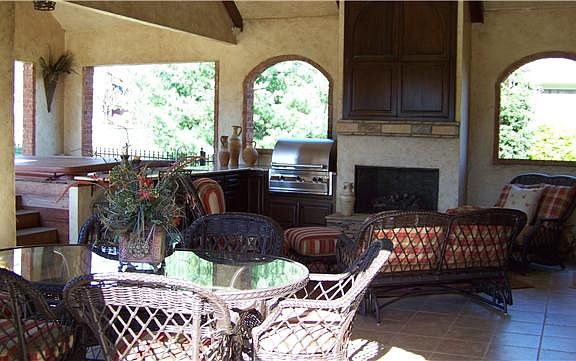 Absolutely fabulous outdoor living area w/42" TV cabinet, fireplace, hot tub, grill, granite bar, incredible pool w/fountain, poolhouse, & sauna! Remodeled kitchen w/granite & SS appliances. Full unfin basmt. On almost an acre!