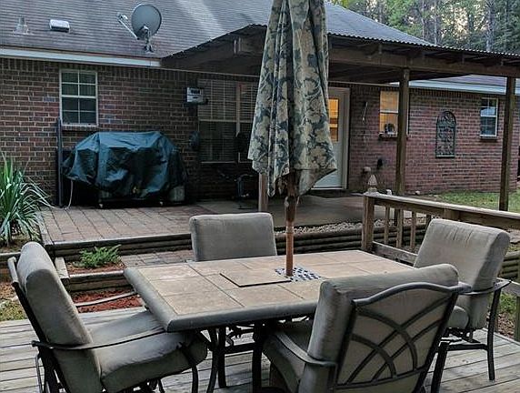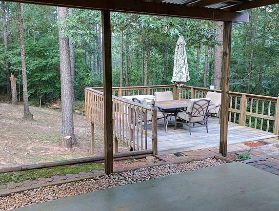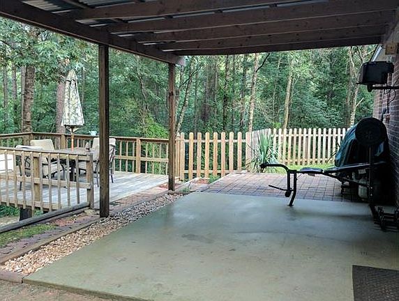 Beautiful Laurel Hills home set in the woods with acreage. Easy access to I65. High ceilings in the livingroom and master bedroom. Decorative fireplace and pretty wood laminate floors are in the livingroom. Large master bedroom will hold a king bed and heavy furniture. All electric house. Metal covered carport will hold 2 cars. Nice wood deck extension off the covered patio puts you right in to the woods. Large workshop and storage buildings included.
