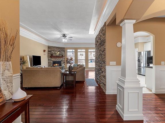 Welcome to this stunning 13-year-old home in Timber Trace Subdivision. The welcoming foyer features custom amenities throughout. Architectural pillars and arched entryways create a formal dining space, perfect for hosting dinner parties. The accent stone wall in the Great Room enhances the wood-burning fireplace and highlights the molding's accent lighting. The kitchen includes a bright breakfast room, a breakfast bar, newer stainless steel appliances, and 42-inch cabinets. The primary suite offers a luxurious bathroom with dual sinks, a soaking tub, a shower, and a walk-in closet. Two additional bedrooms, the main bath, and a laundry room complete the main floor. The finished lower level features a wet bar, game room, a bedroom with egress, and a full bath. The backyard is great for relaxing on the patio, with a sprinkler system and a three-car garage.