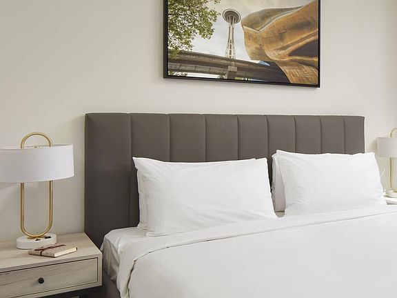 Discover an unrivaled hospitality experience in the heart of Seattle's vibrant South Lake Union neighborhood with this spacious two-bedroom suite. Feel at home with a fully equipped kitchen, in-suite laundry, and a spa-inspired bathroom. The suite features a king and a queen bed, offering comfort and luxury for both short-term and long-term stays. This two-bedroom suite is designed with a full kitchen, a cozy living area, and in-suite laundry, ensuring you have everything you need for a comfortable stay. Secure underground parking is available for $15 per night plus taxes. Enjoy access to over 70,000 sq ft of lifestyle amenities including an outdoor pool with cabanas, a fitness center, a yoga and spin studio with Peloton bikes, and private indoor dining and lounge areas. Located in the heart of one of Seattle's most exciting and safe neighborhoods, this apartment offers an urban resort community experience. With attractions like Climate Pledge Arena, Pike Place Market, Lumen Field, and the South Lake Union waterfront just outside your doorstep, you'll enjoy a very walkable location with over 25 dining options and 2 grocery stores within a 3-block radius. The South Lake Union Streetcar/Trolley stop at Westlake and 9th is just a 5-minute walk away, providing easy access to the main Central Business and shopping district. The layouts of the suites may vary slightly and may not be exactly as shown in the floorplan and images of this listing. A remote work-friendly environment is provided, although a laptop computer is not included.
